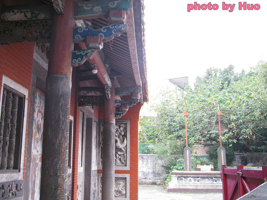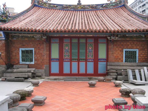 學海書院位於環河南路一段,是台北唯一現存的書院古蹟,列為三級古蹟。清道光17年(1837),學海書院落成時,採用艋舺諧音取名為「文甲書院」,「學海書院」則是後來的名稱。日據時期高姓族人曾經購為宗祠,書院的堂前至今還有一座旗竿(圖4) 。書院主要由講堂、朱子祠和學舍組成,講堂是院長授課的所在,而其後方的朱子祠,祭祀諸子先賢牌位,兩旁廂房地勢較低,則是供學子起居閱讀的學舍(現門封閉,不得進入) 。