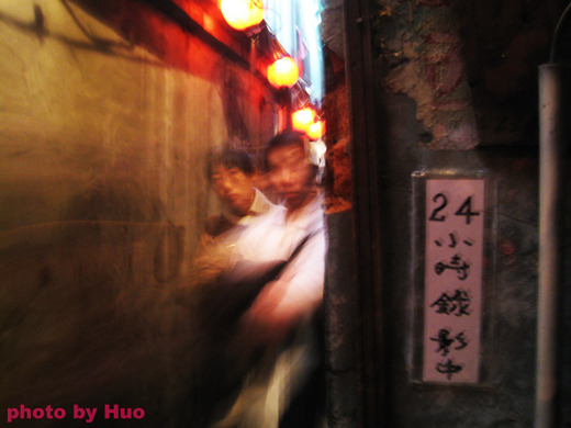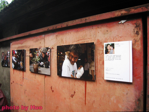 展覽地點在台北市萬華區華西街40巷16號古山園旅社。沿著廣州街到華西街夜市,進去不遠可以看到「古山園旅社」招牌,沿著狹窄的暗巷往裡面走,牆面掛滿著沒有裱框的彩色與黑白攝影作品,呈現質樸與真實的面貌(圖3.4)。