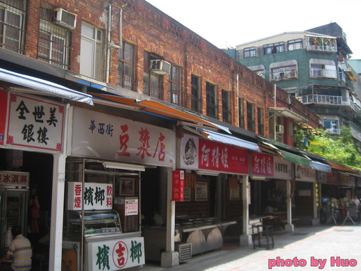 右轉華西街8號,一間不起眼的古早式建築,拱形磚柱騎樓,門眉上高掛著「興旺號」木製扁額(圖2),想像這一帶當年熱鬧景象,帶著我們遊街的導覽老師,指著一塊台灣省菸酒公賣局的老招牌說:「這一家曾經是全台煙酒銷售第一名,店內掛著許多獎狀。」