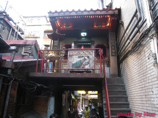 走過名為佛具街的西園路,因拍艋舺電影而知名的「隘門」,就位於廣州街223巷子口,建於清代、萬華地區僅存具防禦的隘門,不按地址無法尋找到。隘門內僅有塊由台北市文獻會的說明牌,隘門的上方建了一座質樸的土地公廟,巷內有幾間茶店(圖3)。隘門的對面,是生意好到應接不暇的龍都冰果店。