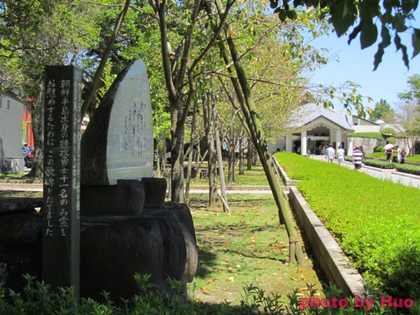 參道一頭是參加「我正為你而死」電影拍攝的複製飛機,這架按照原設計圖製作,非常逼真的陸軍一式戰鬥機「隼」(圖3),知覽曾經擁有170架之多,另外有一架為停飛的初等教練機。參道另一頭是特攻平和觀音堂,每年5月3日慰靈祭所在。