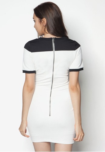 Something Borrowed 撞色羅紋短袖洋裝,精緻羅紋面料製成,採撞色拼肩設計,讓你在任何場合都展現出甜美優雅的氣質。