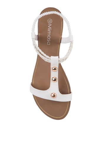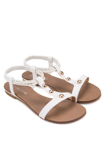 Simple and chic, this pair of sandals from Mimosa is perfect for you to don on during a fun day out. Decorated with golden studs and rope-like design for a neat finishing.