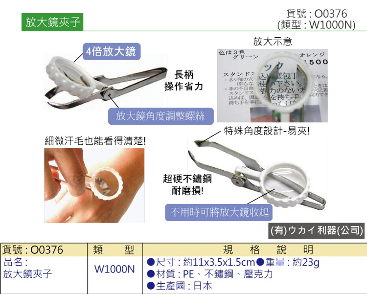 【感恩使者】放大鏡夾子 O0376(放大4倍 細微汗毛也看得清楚 日本製) 6188483