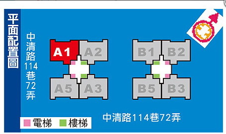 該 案位於台中市北屯區中清路114巷、114巷72弄口,距離中清路約50米,由基地步行1分鐘至中清路上有多家小吃、便利超商,採買可至水湳市場,沿中清 路騎機車3分鐘。由中清路可銜接環中路、中彰快速道路,或達中山高中清交流道,車程均約2分鐘,中清路、環中路口有多家國道客運可搭乘。
