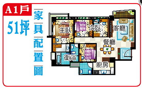 全案大樓為地上15樓,推薦A1戶15樓、客廳朝西北,3面採光,可眺望水湳機場、中清交流道與中科園區景觀,該戶51坪、4房格局=====================================