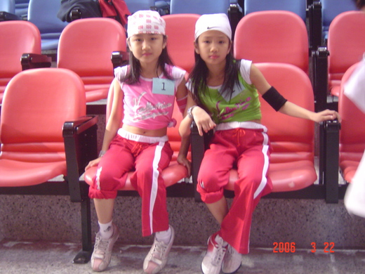 才比完鐵人,可沒時間讓她們倆休息,因為馬上又得到活動中心比才藝了。今年的對手實力比往年精實,話雖如此,但對長年有舞台經驗的她們來說,卻一點也不構成威脅。吉他表演時,和弦配美聲,哇!不是我這當母親的在自我吹噓,所謂天籟,不就是這種聲音嗎?