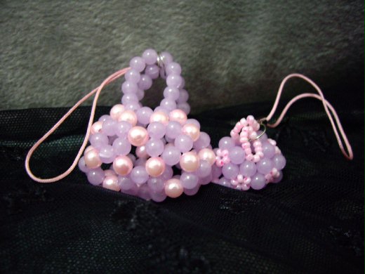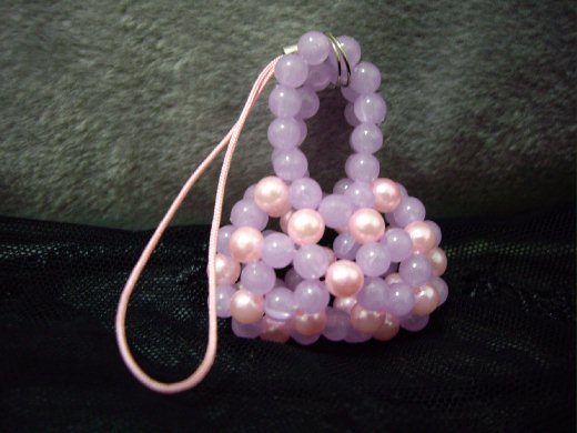 利用二種大小尺寸不同的珠子,串成一個可愛的小提包。