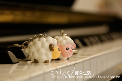 「老婆,你看我帶什麼回來」先生拿出兩隻可愛的小綿羊鑰匙圈(就是照片那兩隻)