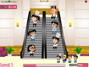 有ㄧ次我闖了禍,我看到手扶梯的盡頭,有ㄧ個紅色按鈕,好奇心的驅使下,我按了下去,瞬間電梯停了,上面的人因慣性都往前跌走了一大步。我知道自己做錯了事,害怕的立刻拔腿就跑。改天再來的時候,那紅色按鈕上多了ㄧ個透明蓋子,沒有鑰匙是開不開的。