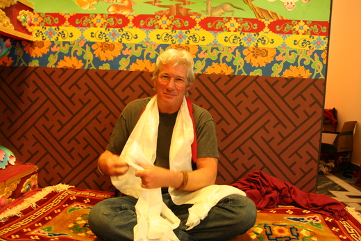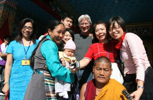 達賴喇嘛出現弘法場合,李察常隨侍,這回也不例外,「李察基爾來了」進佛殿時,不少人竊竊私語,都想跟他合照。