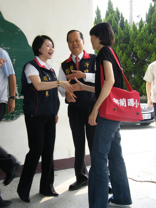 總統夫人周美青昨天拜訪竹縣麻園國小,讓師生又驚又喜,她隨後還去了竹市城隍廟,市內政要都不知情。 「周老師好!」周美青一到麻園國小,孩子們高聲問候,雀躍心情寫在臉上,縣長鄭永金、議長張碧琴、立委邱鏡淳等人陪在一旁,但周美青的目光全在孩子身上。 周美青聽校長蔡孟翰簡報全校只有89人,似乎很驚訝;她接著欣賞學生樂隊演奏,隨後她給吹直笛的二年級學生鄭錦鴻一個大擁抱,全場歡呼。 「你們喜不喜歡打網球啊!」周美青還到操場看孩子練球並送上一箱硬式網球,學生們紛紛脫下帽子要周美青簽名。 學生們難得近距離接觸周美青開心極了,二年級黃子維說,「總統夫人一直微笑,感覺是好媽媽」。 周美青後來到新竹都城隍廟上香祈福,吃了一盤蚵仔煎,阿嬤們看到她,抱著孫子搶到她身邊拍照,看她穿簡單的黑色POLO衫配牛仔褲,直誇「總統夫人穿這麼純樸,厚!我都穿比妳花」。 周美青離開前,看到廟口一名聾啞男子以手推車賣麵包,每個10元,她馬上掏出100元買了10個,兩人笑咪咪的以手語互道謝謝。 【2009-05-14/聯合報/B2版/竹苗綜合新聞】【記者彭芸芳、王慧瑛/連線報導】