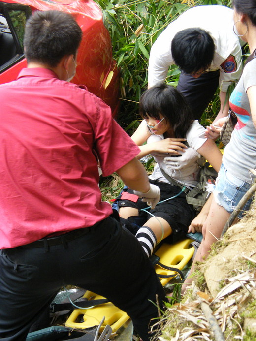 新竹市田姓女子昨天駕車載家人到芎林鄉遊玩,行經華龍村一處產業道路轉彎路段,疑因煞車不及,車子衝過竹林,摔落約5公尺高駁坎,車子翻覆人卡在車內,消防隊員抵達前,附近居民趕緊協助乘客脫困,7人都受輕傷。 員警對駕駛做吹測,酒測值為零,初步了解可能是轉彎時,煞車不及,加上對路況不熟悉才發生意外,車禍原因還在了解中。 「好大的撞擊聲,嚇死人了!」轎車墜落駁坎時,發出很大的聲響,附近居民嚇了一跳,發現是一輛紅色轎車摔落駁坎,車子翻覆,熱心的居民除了報警外,也協助車內7名乘客脫困。7人的傷勢大多是手腳撕裂傷,送醫後已無大礙。 「媽媽,妳還好嗎?」田姓女子脫困後,噙著眼淚連絡家人,她除了手腳撕裂傷外,身體疑有內傷,無法行走,表情痛苦,她年幼的兒子雖然也受了傷,卻很懂事,不哭不鬧,不斷詢問媽媽的身體狀況。 【2009-05-24/聯合報/B2版/竹苗綜合新聞】 |