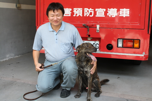 火犬,這隻拉不拉多前年過世後,他在消防教育訓練基地,又一手調