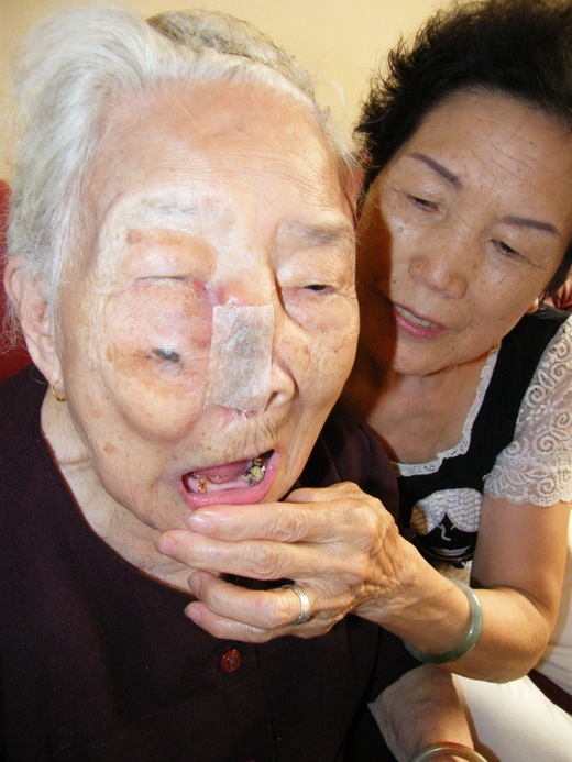 葉玉蓮認為,母親新冒出頭的牙齒顏色黃黃的,不像新長的,伸手去摸,發現「係真耶」,葉古順提醒女兒別摸太用力,免得把牙齒給搖鬆了。