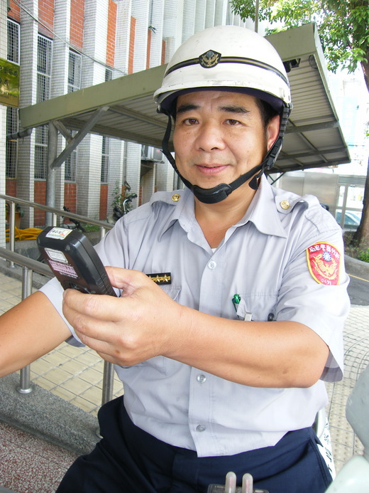 「他超認真的!」同事蘇偉明說,副所長不論是上班或勤餘時間,總是隨身攜帶小電腦,因為熟能生巧,他單手按小電腦按鍵,幾乎不用看螢幕和按盤,甚至可以邊騎車邊按小電腦,可說是眼明手快。