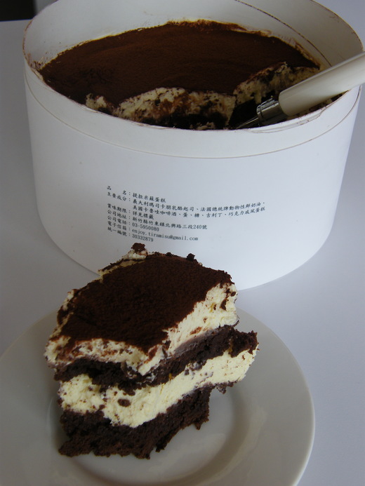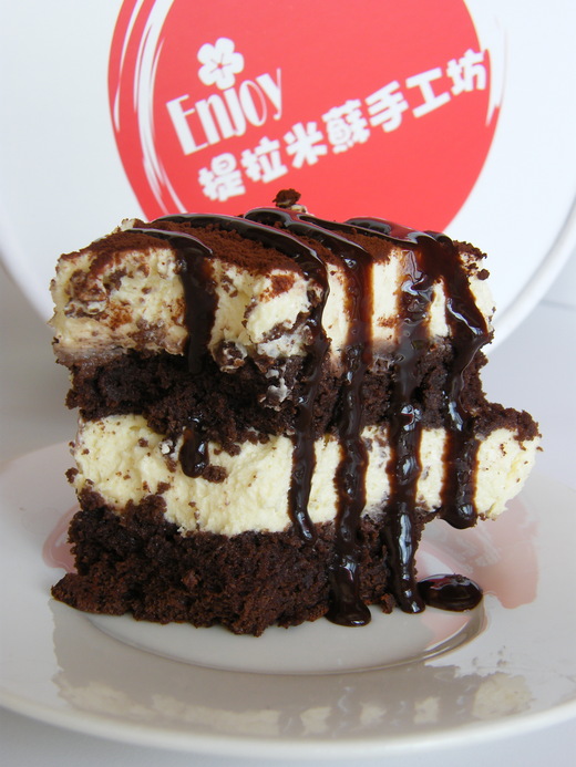 李文正製作的提拉米蘇蛋糕有8公分厚,起司、巧克力蛋糕各2層,起司部分以義大利瑪斯卡邦乾酪、法國總統牌鮮奶油調和而成,蛋糕體是水蒸法做成的戚風蛋糕,口感較溼潤,吃起來入口即化。提拉米蘇蛋糕製程全手工,交到客人手上前,才灑可可粉。