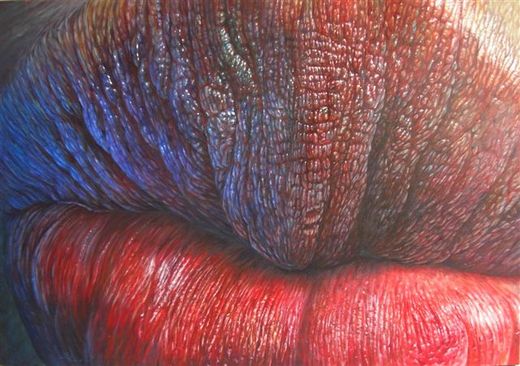 我在展場裡,看到一張是嘴唇細部特寫,叫「甜蜜裂縫」,將皮膚皺
