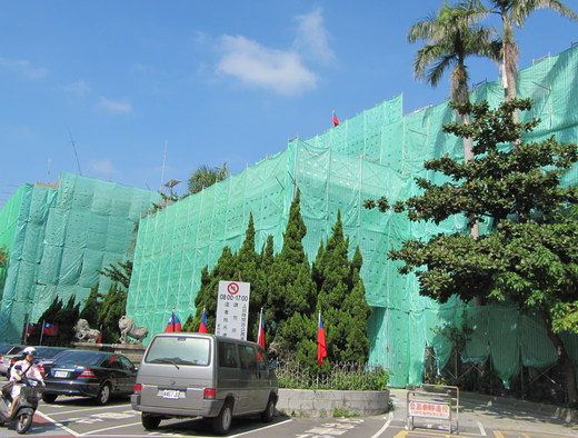 議會及市府週邊各附近單位全都罩上綠色工程罩,狐疑的這麼問;其