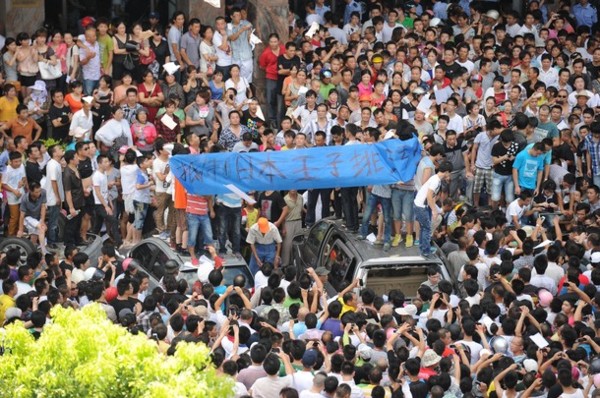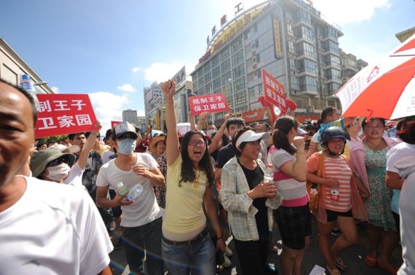 继四川甚邡事件后,7月28日,江苏南通启东市发生大规模群体抗议事件,抗议日本王子纸业向启东附近海域排污。数万愤怒的民众冲进市政府,占据大楼,警车被掀翻,启东市委书记孙建华被扒光衣服,狼狈不堪,现场来了大批警察带走市长,被抗议民众包围,民众要求官员穿上“强烈抵制王子排污”的文化衫。