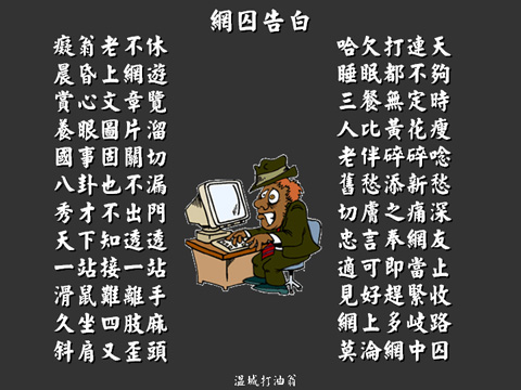 投降吧! 不要掙扎啦! 乾脆把老伴也教會上網, 她就不碎碎唸啦!