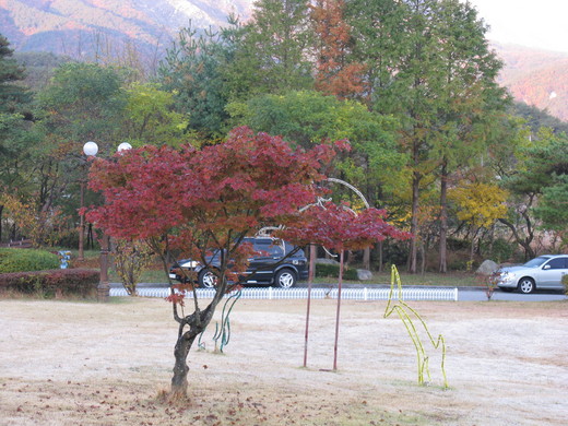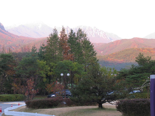 雪嶽山上的秋楓是非常地漂亮,紅得發火的楓葉,是令人難忘的,而那裡地處江原道,是靠近北韓的地方,那兒的神興寺是上千年了。(走進神興寺時,突然想到古剎面試的小說,不知道查理走到日式古剎是什麼感覺啊。)