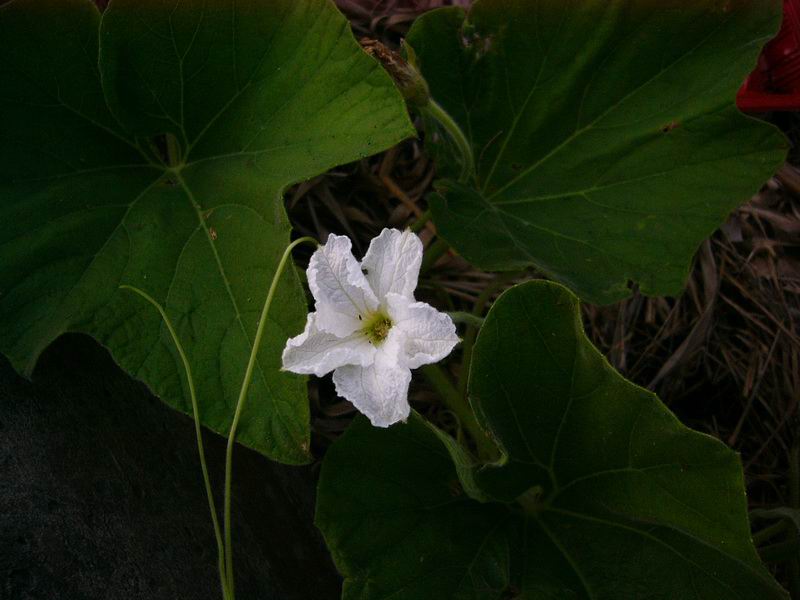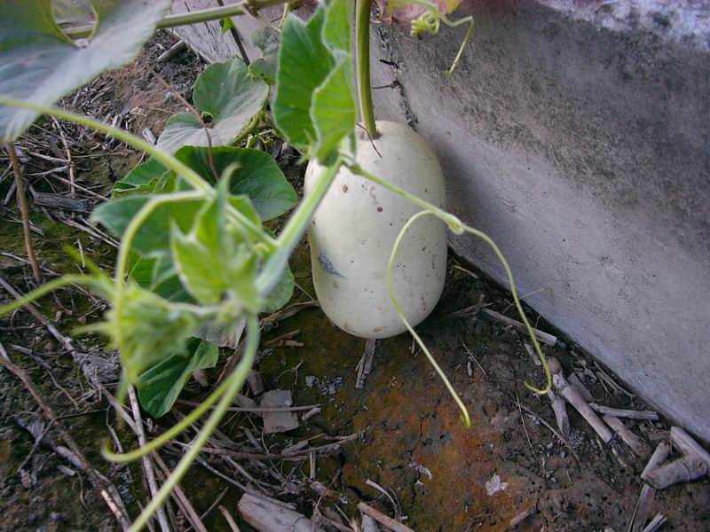 扁蒲的花(上圖),下圖的扁蒲已經過熟,媽媽刻意留下來要當種子的。