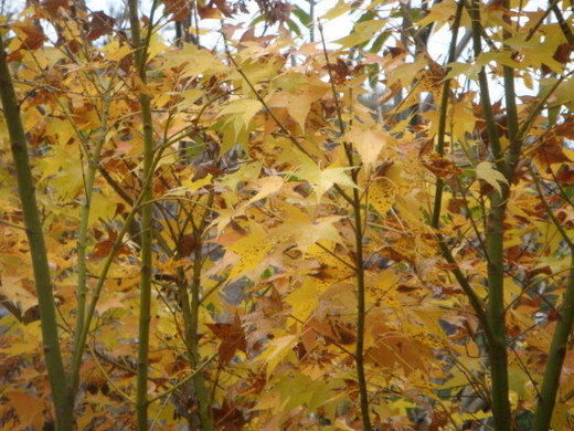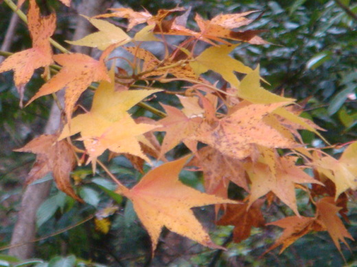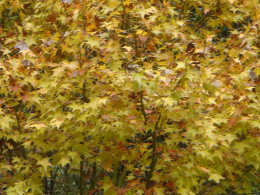 其實紅了不少,有的楓葉是鮮黃色的 , 所以整個黃澄澄的
