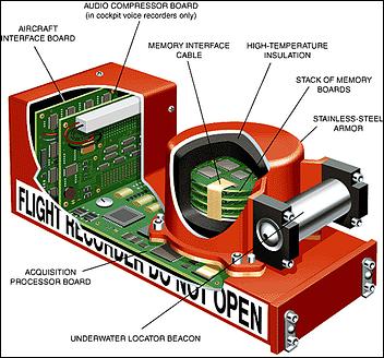 飛航資料記錄器雖名為「黑盒子」,但它實際的顏色為橘紅色,以求顯目便於尋找。黑盒子的名稱由來,可追溯至1954年,在駕駛座機艙內裝設聲音紀錄器的構想在該年首度提出,當時飛機內所有的電子儀器都是放置在大小、形狀都統一的黑色方盒裡。而聲音紀錄器則放在最堅固的黑色方盒中。美國民航局(之後改制為美國聯邦航空總署)在1957年規定,凡是重量超過9.09公噸以上的飛機都必須裝設這些加強保護的飛行紀錄器。8年後,航空局決定將這「黑盒子」漆成亮紅色或橘色,這樣在飛機失事的時候,外表醒目的「黑盒子」就會比較容易被找到。A flight recorder is an electronic recording device placed in an aircraft for the purpose of facilitating the investigation of an aircraft accident or incident. For this reason, flight recorders are required to be capable of surviving the conditions likely to be encountered in a severe aircraft accident. They are typically specified to withstand an impact of 3400 g and temperatures of over 1,000 °C (1,832 °F) (as required by EUROCAE ED-112). There are two common types of flight recorder, the flight data recorder (FDR) and the cockpit voice recorder (CVR). In some cases, the two recorders may be combined in a single FDR/CVR unit.