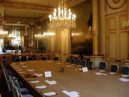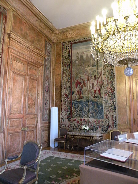 The Élysée Palace (French: Palais de l'Élysée, pronounced: [pa.lɛ d(ə) le.li.ze]) is the official residence of the President of the French Republic, containing his office, and is where the Council of Ministers meets. It is located near the Champs-Élysées in the 8th arrondissement of Paris, the name Élysée deriving from Elysian Fields, the place of the blessed dead in Greek mythology.