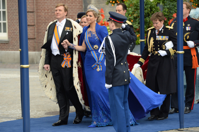 不同於一般歐洲皇室成員的拘泥,荷蘭新國王威廉─亞歷山大的皇后麥西瑪,以手緊握著碧翠克絲女王的手,未有一刻放開的鼓舞支持著顯然強抑著情緒的婆婆。