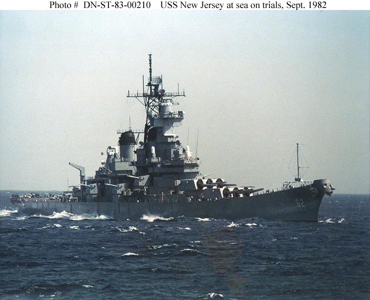 1943年首度服役,BB 62 新澤西 1948年首度除役封存;
