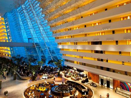 Marina Bay Sands is situated on 15.5 hectares of land with the gross floor area of 581,000 square metres. The iconic design has transformed Singapore's skyline and tourism landscape since it opened on 27 April 2010. The property has a hotel, convention and exhibition facilities, theatres, entertainment venues, retailers, and restaurants.Marina Bay Sands was originally planned to be completed in a single phase in 2009,[7] but rising construction costs and the financial crisis forced the company to open it in phases. The first phase's preview opening was further delayed until 27 April 2010, and the official opening was pushed back to 23 June 2010. The rest of the complex remained under construction and was opened after a grand opening on 17 February 2011.