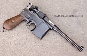 Generally considered the second oldest successful semi auto pistol it came out in 1896. The Borchardt that came out in 1893 was the first successful auto loader though it didn’t stick around very long and was the forunner of the Luger. The Borchardt pistol came out with a 30 caliber bottle neck cartridge which was also adopted by the Mauser C 96 pistol in essentially the same loading though the C 96 was loaded a little hotter by some accounts. While the Broomhandle wasn’t designed by Paul Mauser three brothers who worked at his factory developed the design over a period of a couple of years starting in 1893. By March of 1895 they had a prototype made and fired it. The brothers Fidel, Friedrich and Josef Feederle had designed the Mauser pistol and by 1896 Paul Mauser applied for patients in several countries as he felt the he had a commercial winner.
