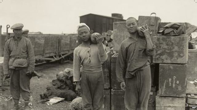 Members of the Chinese Labour Corps move munitions during World War I.