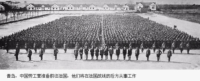 1919年由中國學生發起的反對凡爾賽條約中恥辱性條款的五·四運動就是這個節點的表現。簽了合同的勞工們,在樂魁索(Creusot)的工廠中努力生產,在前線挖掘「法國兵」的壕溝,在物資營或是後方醫院裏做工。在中國政府向軸心國宣戰以後,地方指揮部更是毫不猶豫地把他們派到了前線。差不多有6000名中國勞工死於疾病、敵人的攻擊或者惡劣的醫療條件,他們被埋葬在了法國西北部的兩座軍人公墓中。