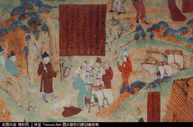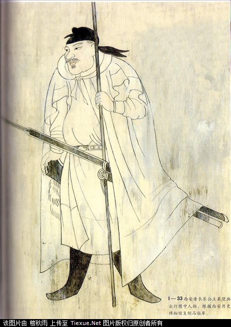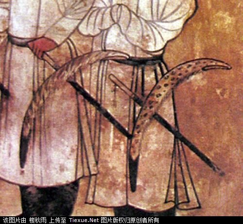 關於唐刀的起源,我們都知道它是由漢刀演化而來,中間歷史連貫,並無可爭辯之處。可偏是有一小撮別有用心者,稱唐刀仿自突厥,其依據不過是在中亞發現了幾幅時間上相當於唐中晚期的壁畫,畫中有似唐刀的兵器。我們更有理由相信,是當時的突厥在被盛唐擊敗後,開始仿製唐刀,以替代其落後的武器。