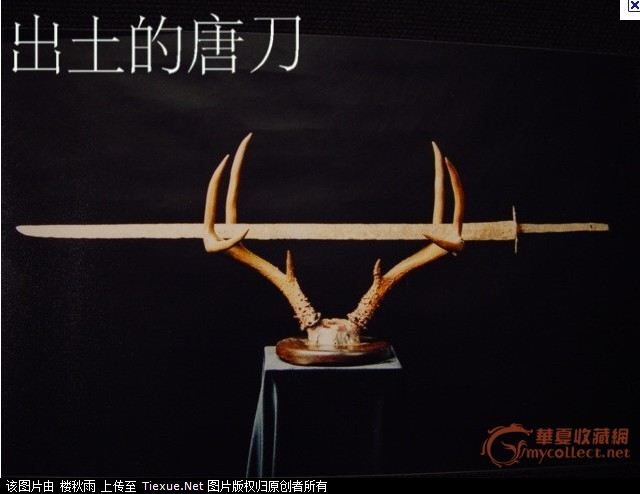 目前中國本土出土之唐代刀劍文物極少,一例是1991年陝西長安縣竇皓墓出土的水晶墜金柄環首儀刀。