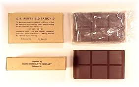 軍用巧克力從1937年起即是美軍標準口糧之一,並作為基本野戰口糧與雜物包的一部分配發部隊。巧克力口糧有兩個用途:提高士氣,並作為高熱量、袖珍的緊急口糧。軍用巧克力口糧通常依軍方律定的重量、大小與持久性製造。發給軍人的巧克力大部分由好時公司生產。