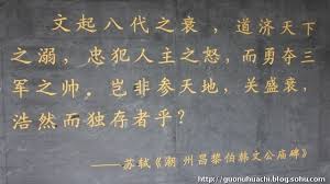 韓文公祠簡稱韓祠,始建于北宋咸平二年(西元999年),最初建在金山,後來遷到州南七裏,南宋淳熙十六年(西元1189年)才遷到這裏,算起來也有八百多年的歷史了,為目前我國現存歷史最久遠、保存最完整的紀念唐代大文學家韓愈的專祠。潮洲所蘊涵的悠久歷史與古老文化,也因韓愈貶潮的一段故事而聞名遐邇。有道是唐憲宗元和十四年(西元819年),韓愈因“諫迎佛骨”事件,而被貶謫為潮州刺史。他在潮州的短短八個月時間,祭鱷釋婢,興學勸農,功勳卓著,深受歷代潮人的尊崇與懷念,後人更將潮洲的許多地名與韓字相掛,以示銘記和敬仰。韓祠內有一塊碑刻:“若無韓夫子,人心尚草菜。”便是對他極高的評價。所以,當地的市委會同仁一致希望我們能前往觀瞻,說是:沒有過韓河上韓山拜謁韓文公,就不算到了潮洲,大有不到長城非好漢之意。聽他們這麼一說後,也算是喜文弄墨的我們,既有機緣瞭解當地的文化民俗自是怯怯然不敢不訪了。