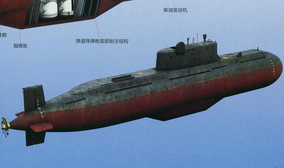 最大潛深200米,常規排水量3,797噸,水下排水量6,628噸,可試驗巨浪-2和巨浪-2A潛射戰略導彈、長劍-10B、