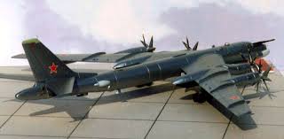 The aircraft has four Kuznetsov NK-12 engines, each driving contra-rotating propellers. It also remains the only propeller-powered strategic bomber still in operational use today. The tips of the propeller-blades move faster than the speed of sound, making it one of the noisiest military aircraft Its distinctive swept-back wings are at a 35° angle.