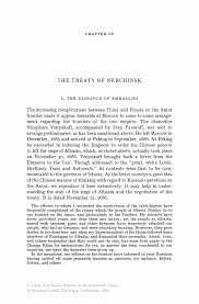 The Treaty of Nerchinsk (1689) (Chinese: 尼布楚条约) was the first treaty between Russia and China. The Russians gave up the area north of the Amur River and east of the mouth of the Argun River but kept the area between the Argun River and Lake Baikal.