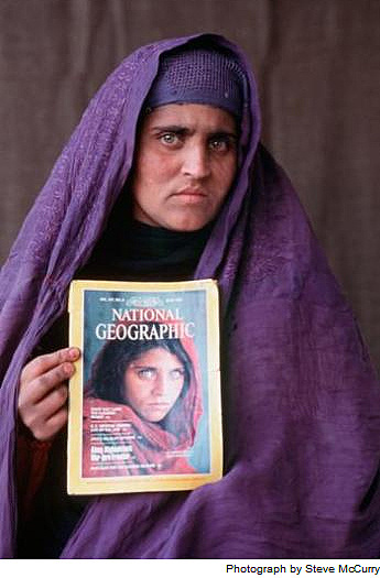 雖然人們不知道她的名字,但是這張題為「阿富汗少女」的照片出現在了1985年6月的國家地理雜誌的封面上。她的臉用紅色的圍巾披著,她銳利的海綠色的眼睛直直地盯著照相機。這一形象成為20世紀80年代阿富汗的衝突和世界各地的難民局勢的象徵。在國家地理雜誌的歷史上,這張圖像被稱為最知名的照片。