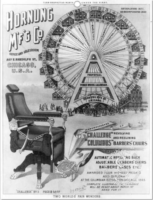 在1893年美國芝加哥世博會的“大道樂園”裡,一個超大的摩天輪觀光設施第一次展現在世人面前,目的是與巴黎在1889年博覽會建造的巴黎鐵塔一較高下。這座摩天輪是由美國工程師喬治·菲力斯設計,並以他的名字命名。
