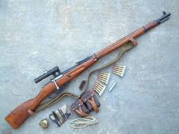 The Mosin-Nagant was the standard issue weapon to Soviet troops in World War II. In 1932 with the addition of a scope, it was adapted as a sniper rifle. Approximately 37,000,000 Mosin-Nagant rifles were built.