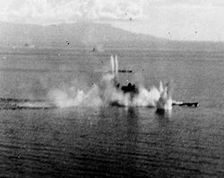 Yamato hit by a bomb near her forward gun turret in the Sibuyan Sea, 24 October 1944.