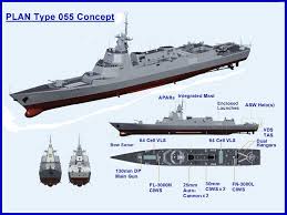 NATO,及日本平評論稱呼,中國海軍在2014年最引人矚目的是055型萬噸級導彈驅逐艦專案的建造啟動。這種新型驅逐艦採用的通用垂直發射,可發射防空、反潛、反艦導彈,也可發射陸攻巡航導彈,是僅次於美軍的一種先進發射方式。該型艦的綜合戰力超過美軍“阿里伯克”級和日韓“宙斯盾”艦,僅次於美國最新的DDG-1000。