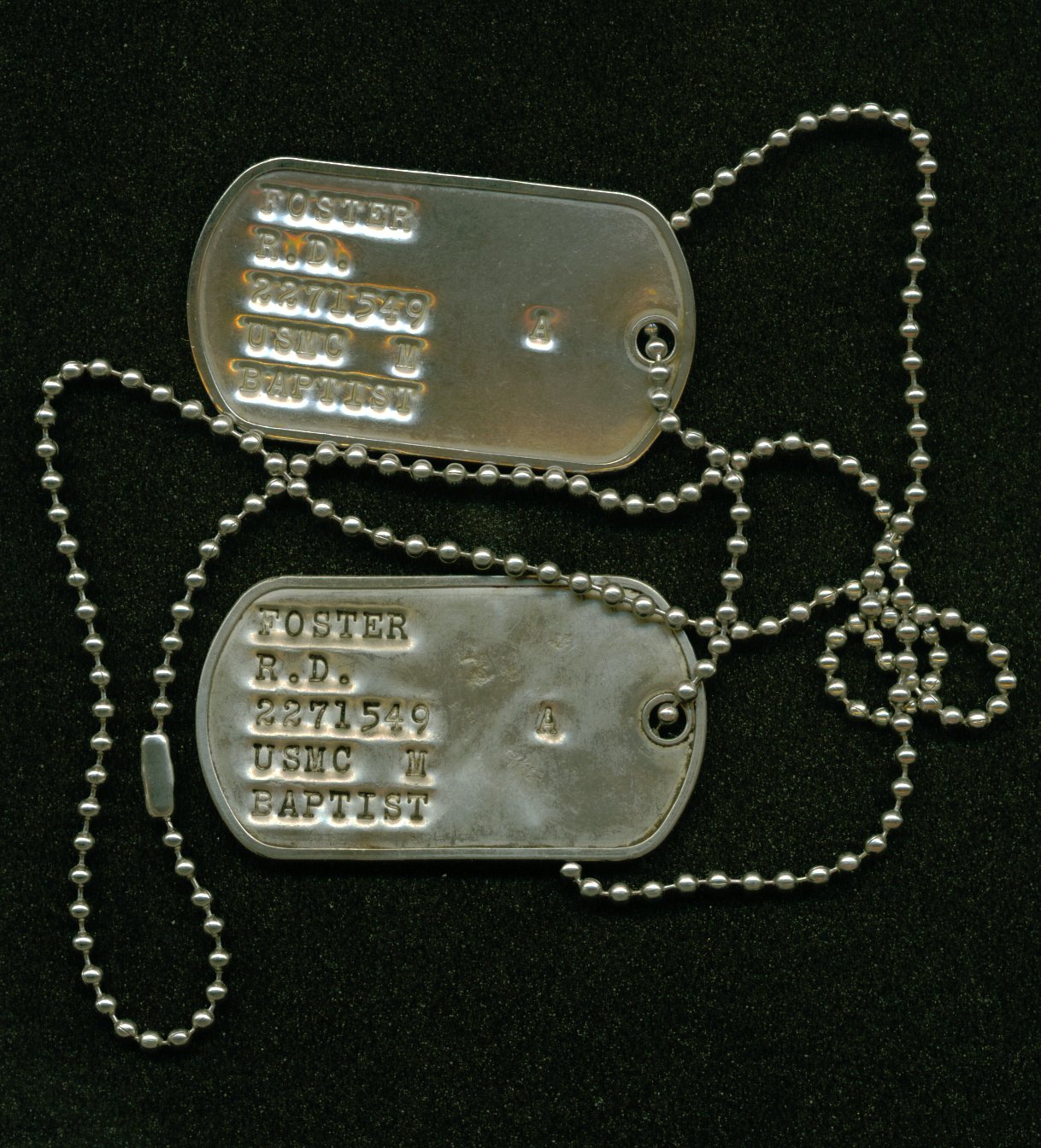 A persistent rumor is that debossed (imprinted with stamped in letters) dog tags were issued from World War II till the end of the Vietnam War and that currently the U.S. Armed Forces is issuing embossed (imprinted with raised letters) dog tags. In actuality, the U.S. Armed Forces issues dog tags with both types of imprinting, depending on the machine used at a given facility. The military issued 95% of their identification tags up until recently (within the past 10 years) with debossed text.