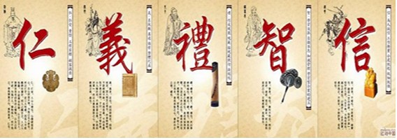 孟子提出“仁、義、禮、智”,董仲舒擴充為“仁、義、禮、智、信”,後稱“五常”。這“五常”貫穿于中華倫理的發展中,成為中國價值體系中的最核心因素。